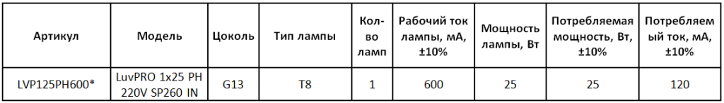LuvPRO 1x25 Т8 PH600 220V SP260 IN |