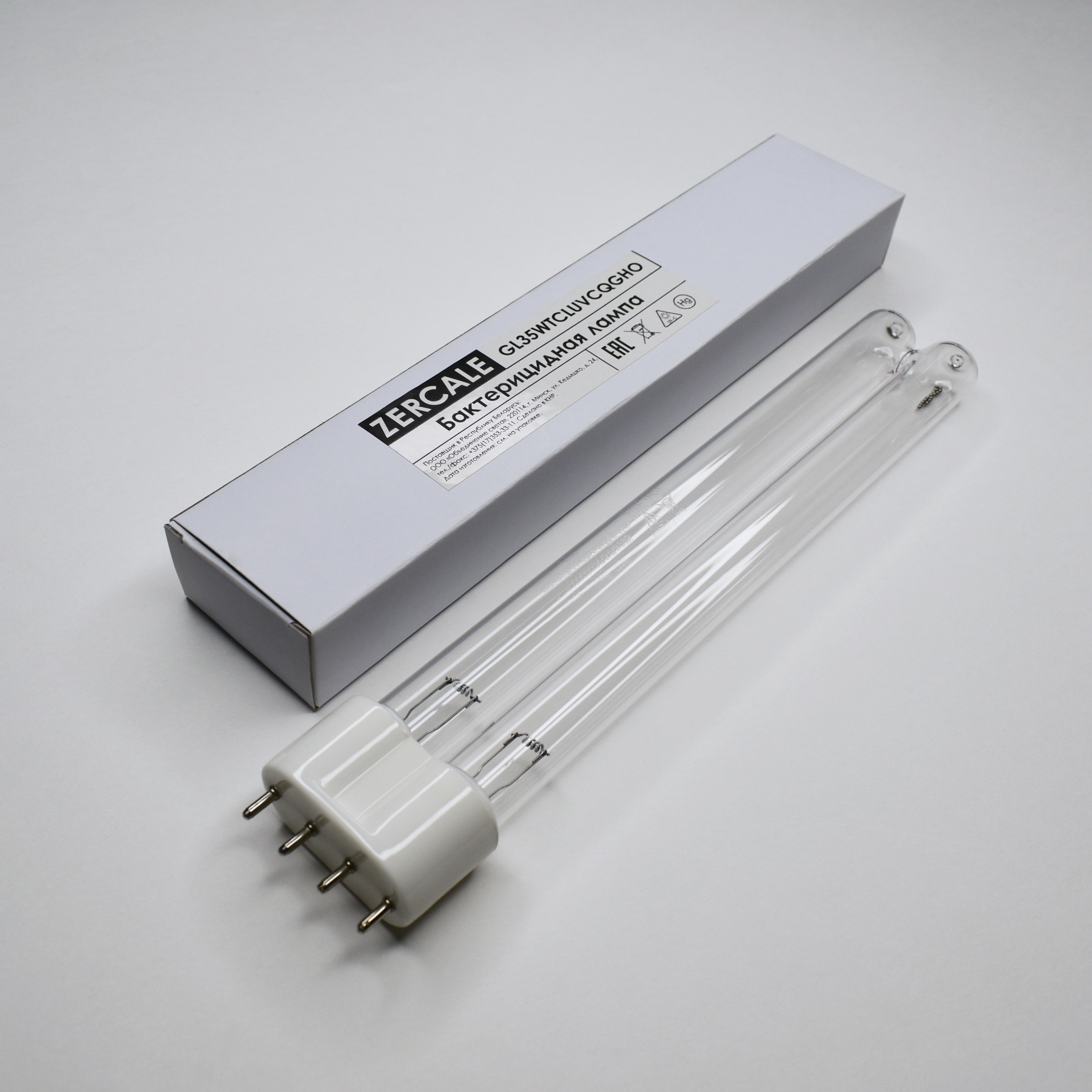 Лампа бактерицидная Zercale Compact GL35WTCLUVCQGHO 2G11 225mm, компактная, кварцевое стекло, без озона