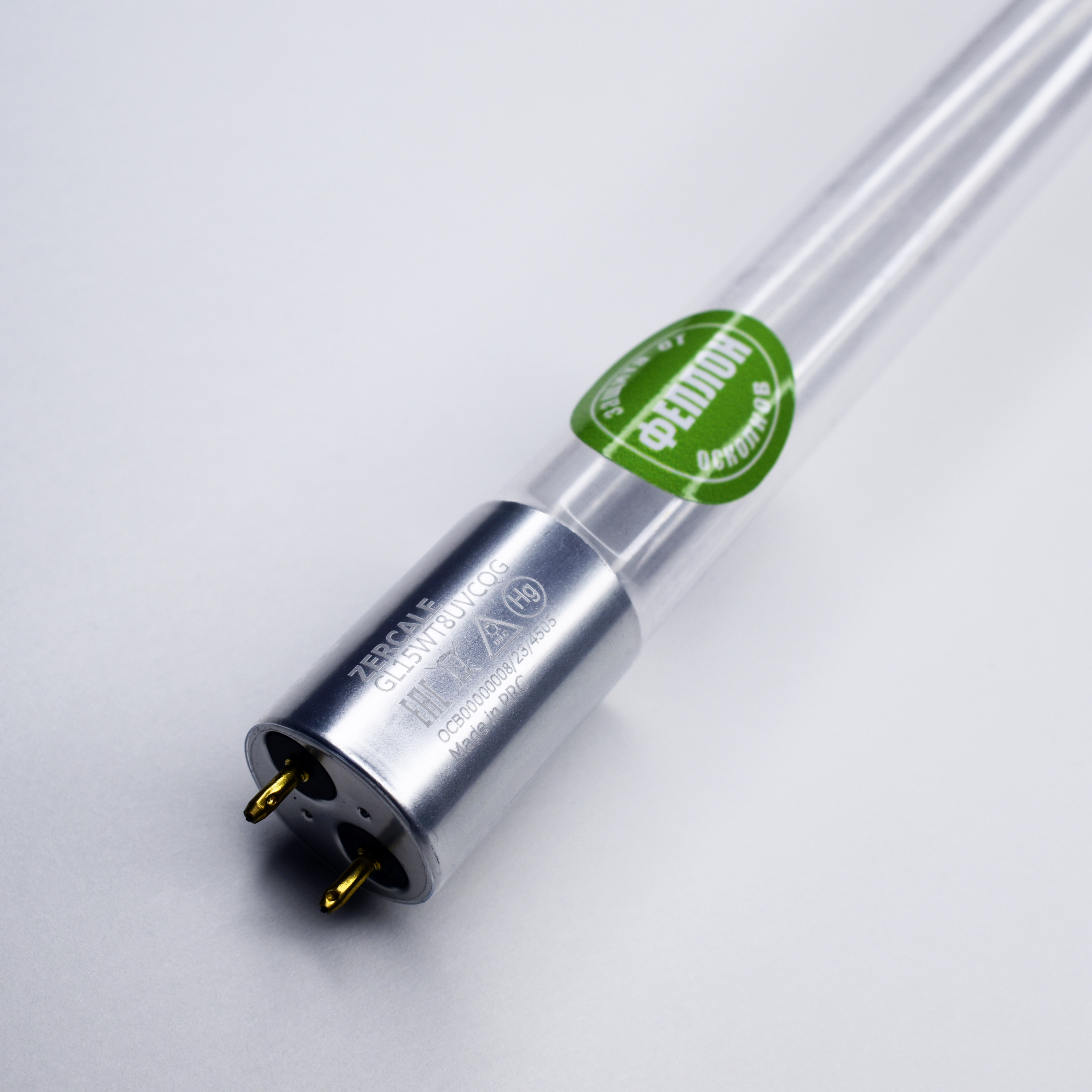 Бактерицидная лампа ZERCALE GL15WT8UVCQGFEP в оболочке ФЕПЛОН (FEP) обладает дополнительным уровнем защиты благодаря специальной оболочке ФЕПЛОН. Данное защитное покрытие предотвращает распространение осколков стекла и ртути в случае поломки или повреждения лампы. Эта функция не только обеспечивает безопасность сотрудников, но и предотвращает вынужденные остановки производственной линии.