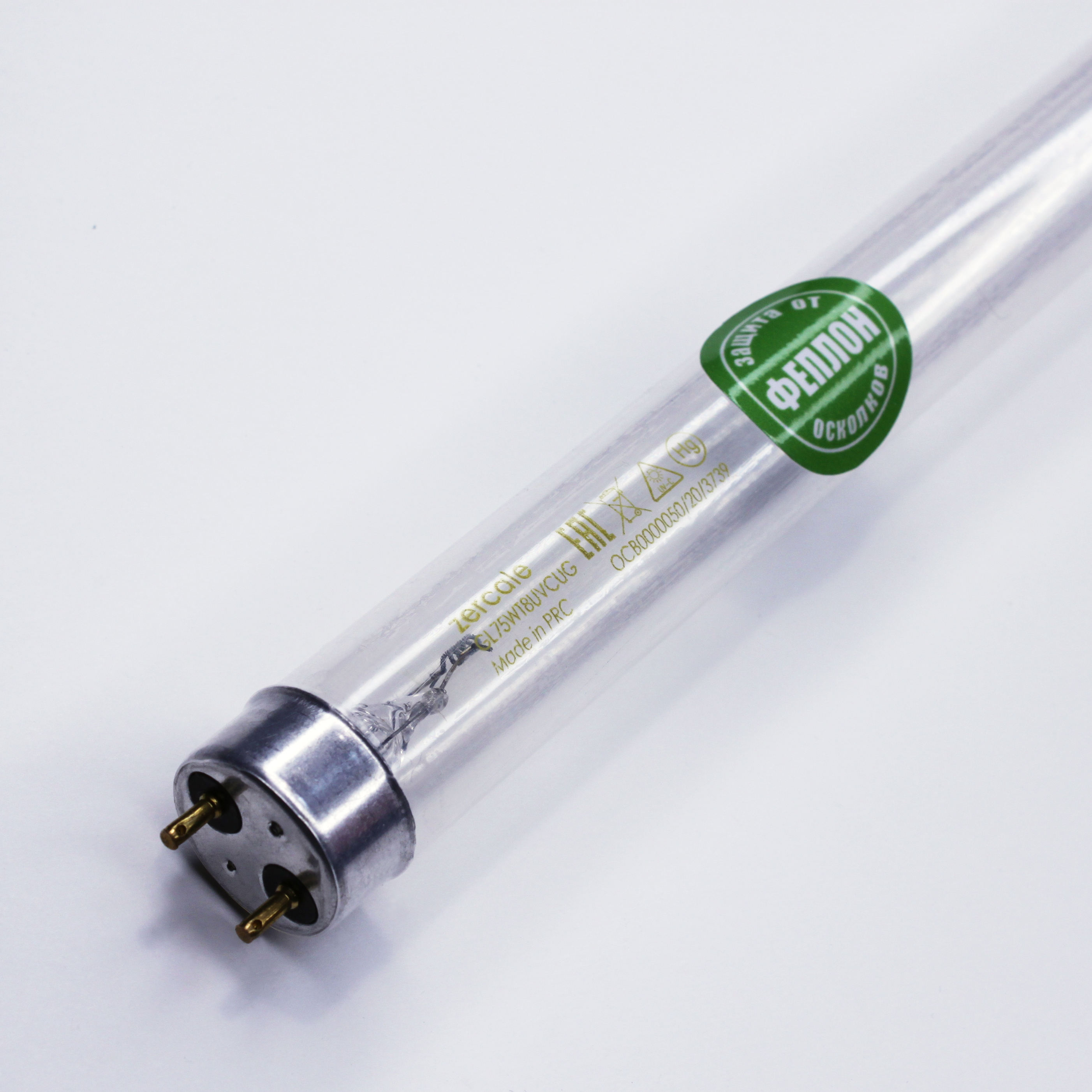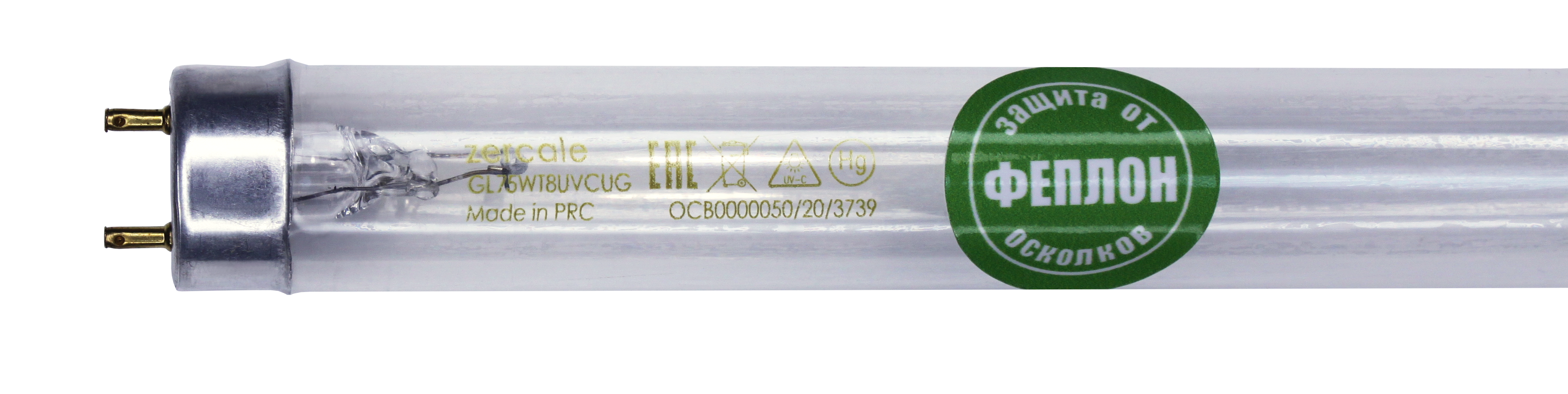 Бактерицидная лампа, ZERCALE Uviol Glass Feplon GL75WT8UVCUGFEP обладает дополнительным уровнем защиты благодаря специальной оболочке ФЕПЛОН. Защитное покрытие предотвращает распространение осколков стекла и ртути в случае поломки или повреждения лампы. Эта функция не только обеспечивает безопасность сотрудников, но и предотвращает вынужденные остановки производственной линии.